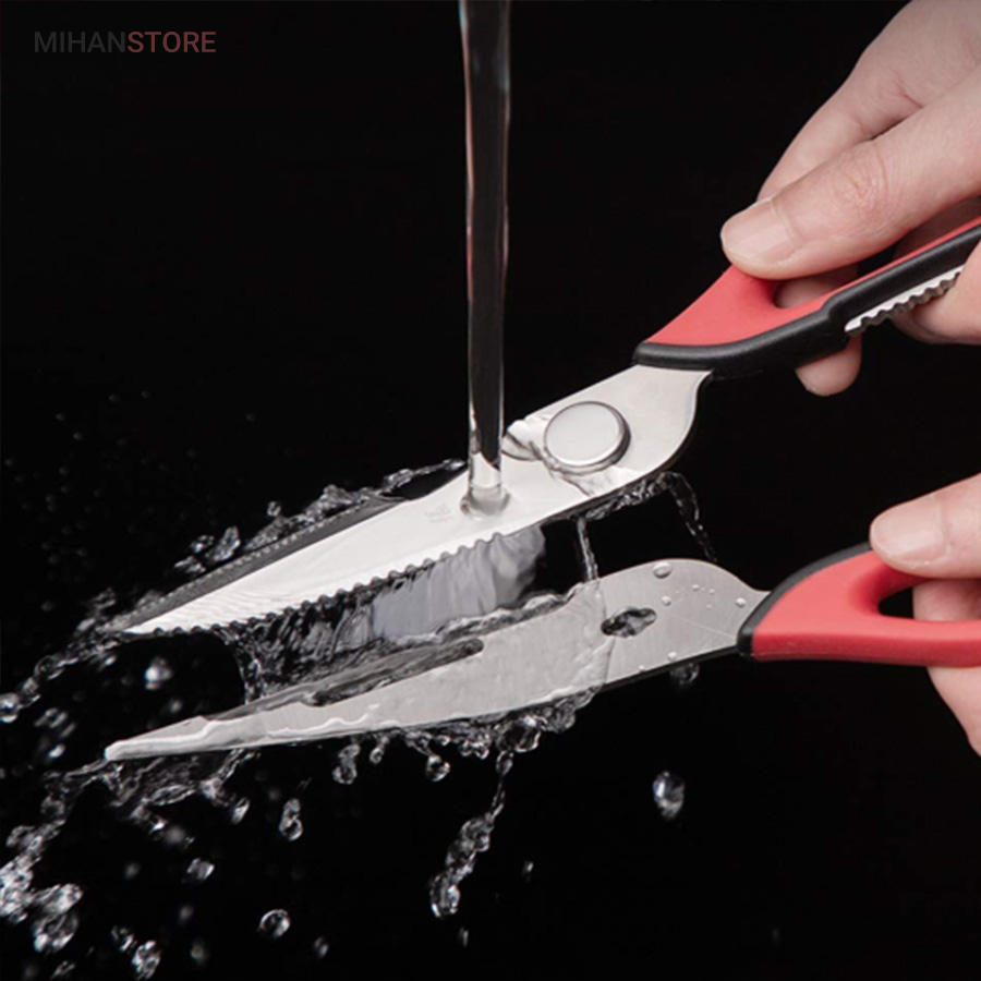 هم قیچی، هم بازکن، هم کابل کش و هم چاقو! این قیچی جادویی 8 کاره باورنکردنی در هر زمینه ای مفید خواهد بود. محصولی کاملاً جدید که باید در کار آشپزخانه خود داشته باشید و کار شما را آسانتر میکند و نمیتوانید نزدیک آن باشید. در آشپزخانه می توانیم هنگام سرو مرغ، سبزیجات را خرد کنیم یا به راحتی استخوان ها را برش دهیم. می توانید از آن به عنوان کرکر فندقی یا گردو استفاده کنید. به راحتی می توانید درب بطری های خود را باز کنید. به طور خلاصه، به لطف قیچی جادویی 8 کاره، کاری که در زندگی روزمره انجام می دهید اکنون کاربردی تر شده است. قابل شستشو در ماشین ظرفشویی می باشد.
